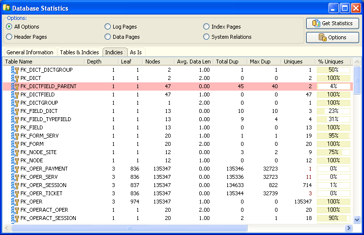 Database statistics